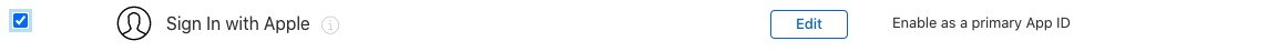 위 항목들을 채우고 아래로 스크롤하여 Sign In with Apple을 클릭한다.